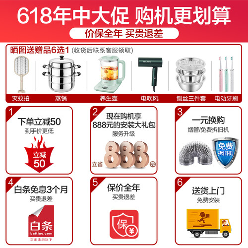 新型回式漩吸,不仅实用,而且十分结实,持久耐用。强劲大吸力,轻松应对烹饪高峰,不再担心油烟倒灌,快速吸排。