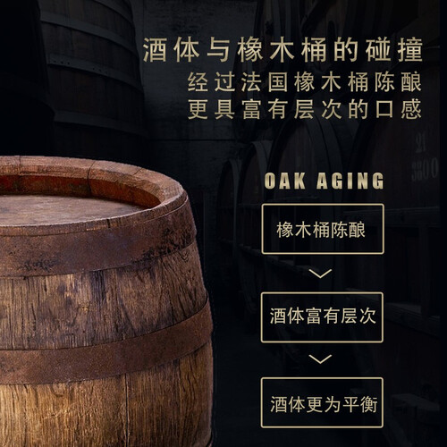 原料严格手工采摘,人工筛选,每一环节都严谨苛刻。经过法国橡木桶陈酿,酒体富有层次,更为平衡。