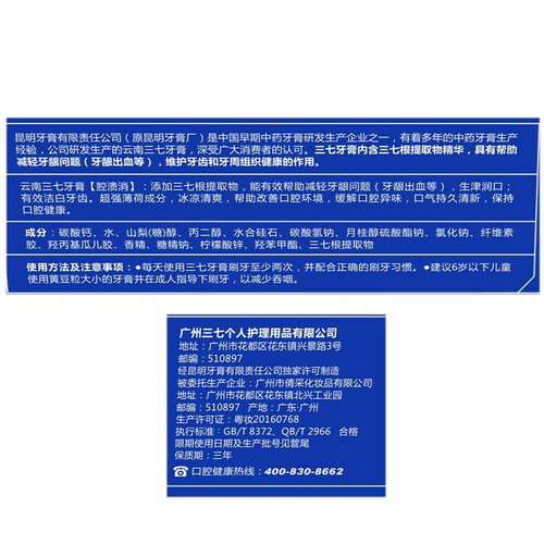 含有三七提取物等草本精粹,日常护理口腔,呵护牙龈健康。添加薄荷成分,口感冰凉清爽,持久清新口气。