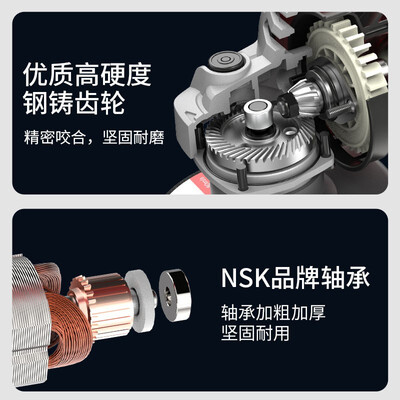推拔双向辅助薯饼,应对不同角度需求,使作业更便捷,外置电刷,拆卸更方便,180°旋转防护罩,完美应对死角。