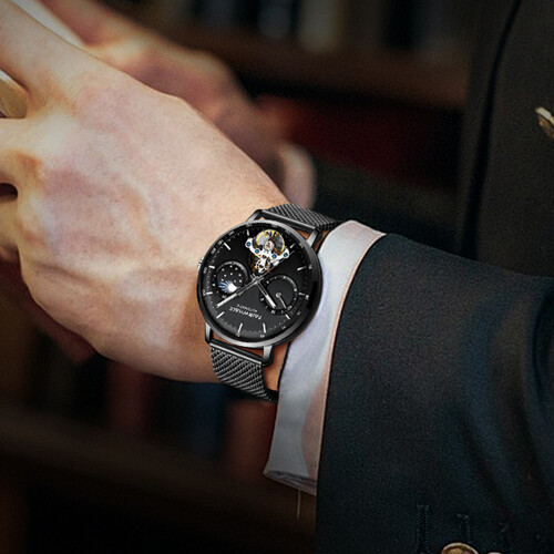 欧美时 全自动镂空腕表