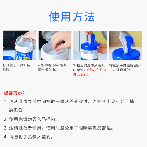 湿巾中含有酒精成分,能有效消毒,并抑制微生物滋生,搭配密闭圆桶包装,防止水分蒸发,放在车上、办公室都很不错。