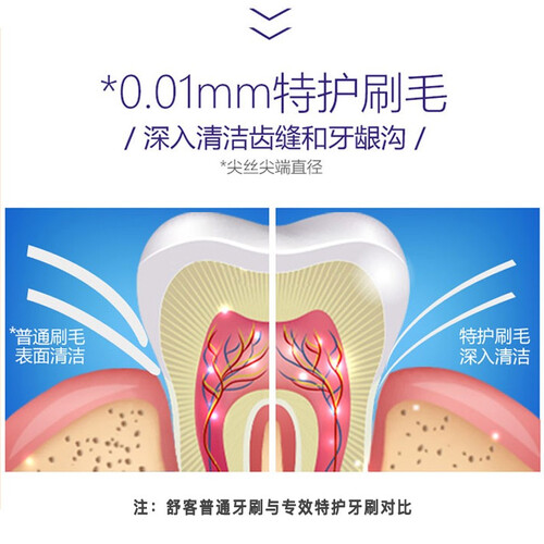 选取进口BBC进口软刷毛,能深入清洁牙龈深处和牙缝间隙,有效防止牙结石。还有TPE柔软橡胶握柄设计,手感舒适。