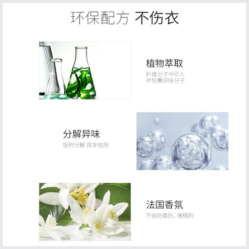 采用喷雾装设计,灵活携带省空间,随时随地护理衣物。拥有淡淡植物香气,帮助分解难闻异味,无惧近距离考验。