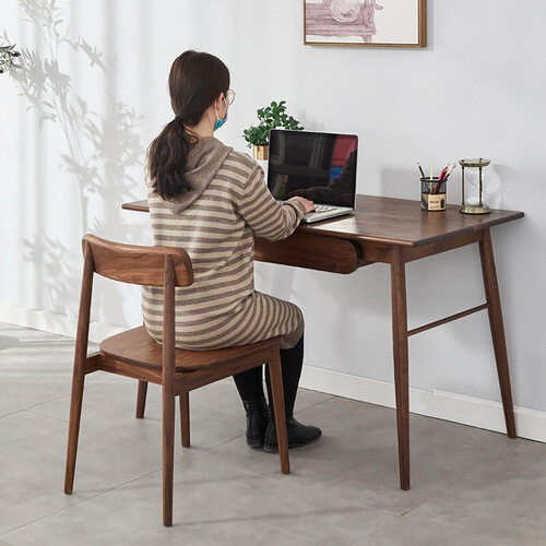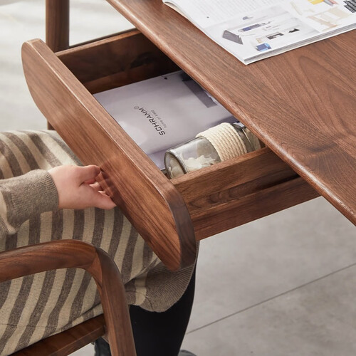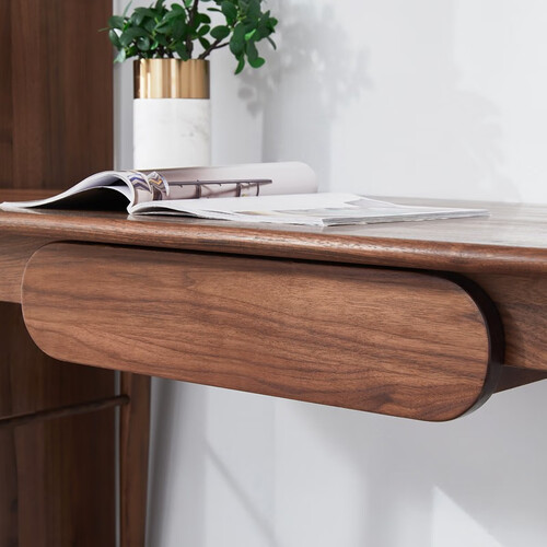 精选北美进口的黑胡桃木,木质含水量较低,久用也不易变形开裂。表面采用植物木蜡油,使得书桌色泽更为柔和。