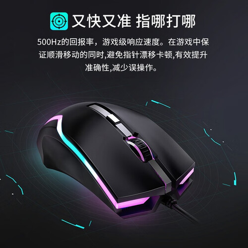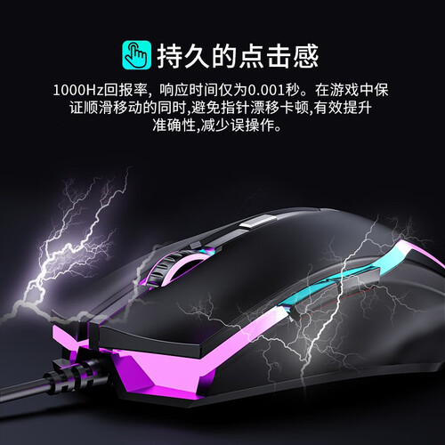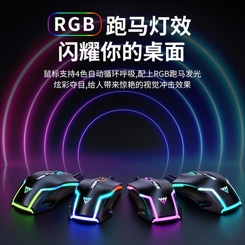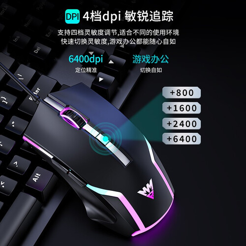 金属立体滚轮,防滑耐磨,滚动顺畅;自带七彩灯效,DIP6档位可调,按键灵敏,且安静舒适,不影响他人。