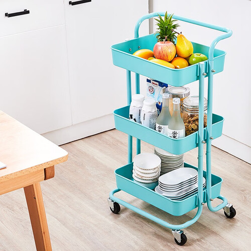 网篮采用塑胶材质,防水不风化,且承重力更强更经久耐用。一体成型扶手,让你能轻松将置物架推到家里的每一个角落,舒适又方便。