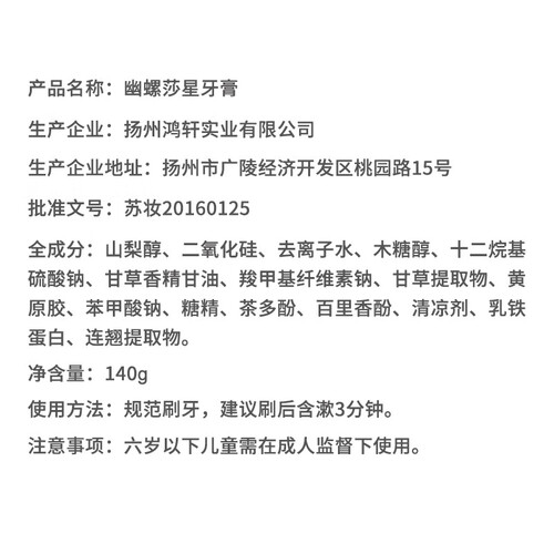 幽螺莎星 温和护理牙膏