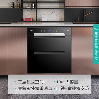 采用三层独立空间设计,锅碗瓢盆筷子刀具等分区存储消毒,呵护餐具不受损。搭配门锁童锁双安防,保障消毒安全,使用更放心。