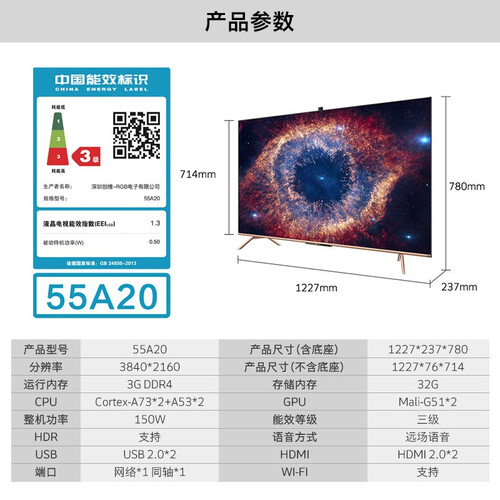 搭载远场语音的功能,在客厅的各个角落都可以用语音灵敏操控。搭载核心防蓝光技术,保持清晰画质,同时降低视力损伤。