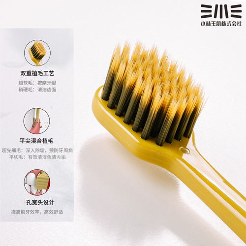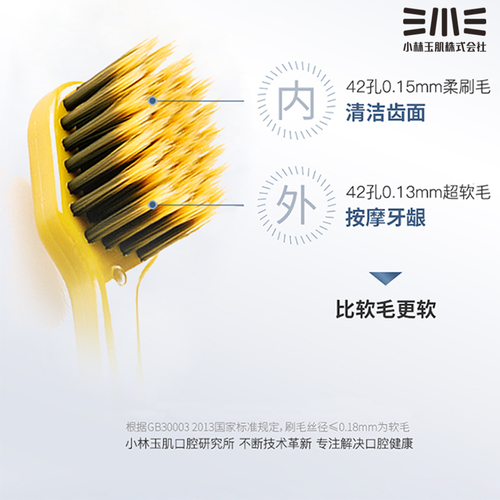 采用15℃铜片工艺,轻松固定刷毛,呵护牙龈防止力度大造成损伤。结合树脂手柄,无惧冷热,依然保持柔软防滑。