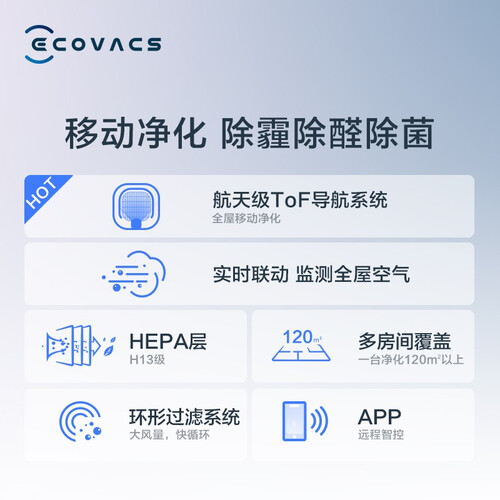 突破传统空气净化器瓶颈,将机器人技术与空气净化功能创新结合。航天级ToF技术,快速识别家居障碍,躲避更灵敏。