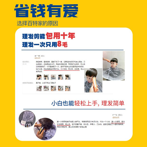 R型圆角刀头设计,梳齿圆润,不伤头皮,呵护宝宝娇嫩头皮。搭载合金电机,动力强劲,稳定耐用。