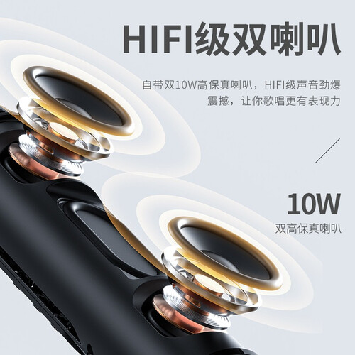 采用全新铝合金烤漆工艺,手感细腻,抓握更舒适;专业拾音技术,带来更加动人的歌唱效果;内磁双喇叭,伴奏声音更加纯净清晰。