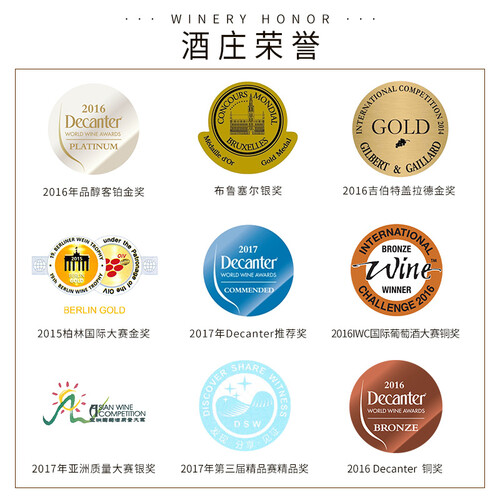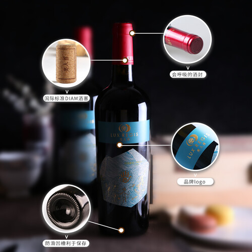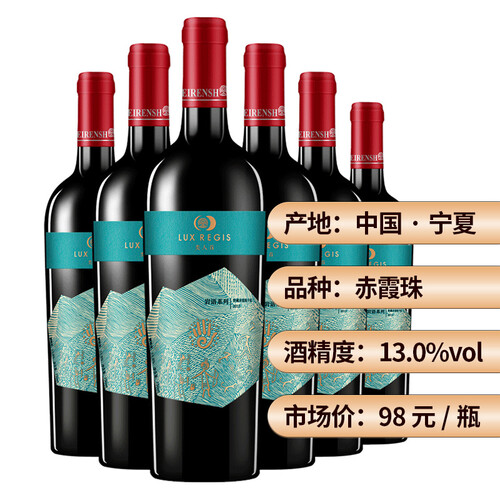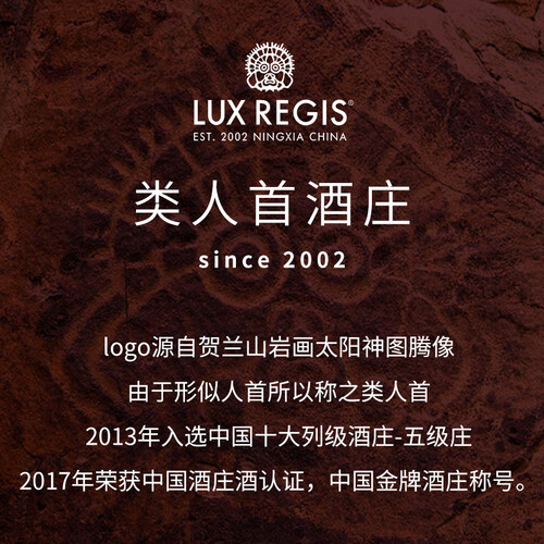 拥有充足光照环境条件,赤霞珠品种含有更高的葡萄糖份,更有利于酿制酒体的口感。瓶身图案来自贺兰山古岩画,彰显文化底蕴气息。