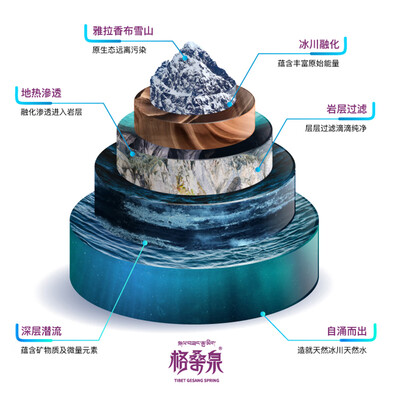 原料生产自西藏的冰川雪山,乃大自然馈赠,其中富含大量的矿物质元素。水质偏向于弱碱性,利于人体吸收,可长期饮用。