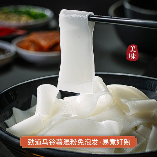 新鲜土豆宽粉,香辣爽口,柔韧性强,筋道十足,耐烫耐煮,好吃不腻,口感丰富,每一口都挑动你的味蕾。