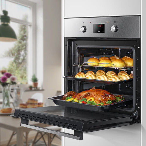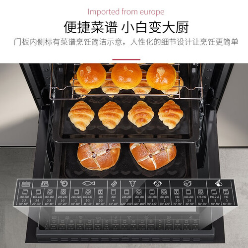 蒸烤箱配备了搪瓷内胆,良好的保温性更加节能,清洁起来十分的方便。快速预热功能,迅速升温节省烹饪时间。
