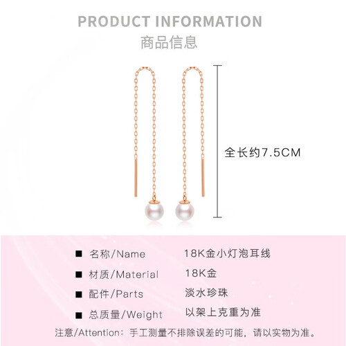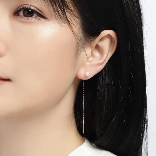 耳线长度适中,恰到好处的垂坠感,修饰脸型,提升气质。简约线条搭配圆润的淡水珍珠,颗颗精致饱满。