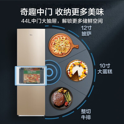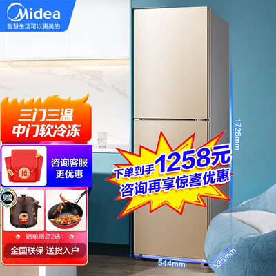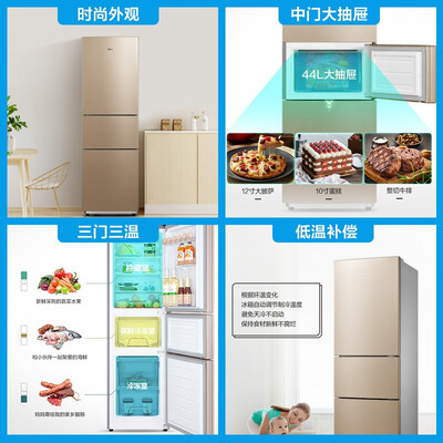 美的 三门直冷节能冰箱