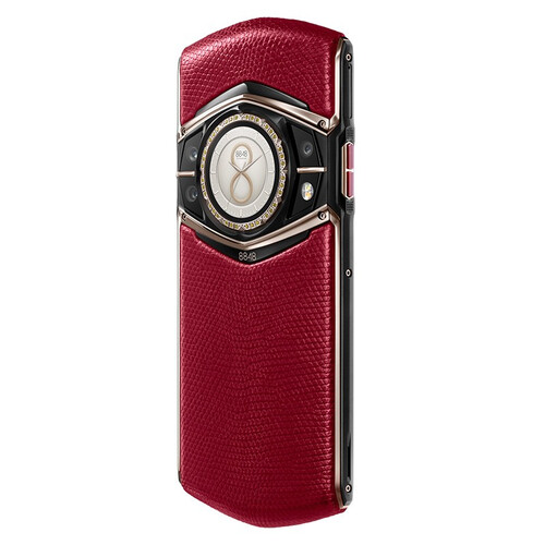 蓝宝石环绕于外壳,配合红宝石镶嵌按键,点缀你的品味人生。外壳采用光泽华丽的蜥蜴皮,优雅别致,彰显您的高贵气质。