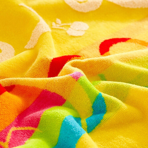 经过多道工序的提炼剥取处理,毛圈均匀蓬松,触感更加柔软。采用割绒提花工艺,正反面都可以显示图案。