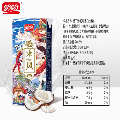 优选东南亚进口椰子作为原料,品质有保证,不添加色素防腐剂,椰香四溢,口感十分柔和顺滑,冰镇后饮用口感更佳。