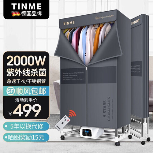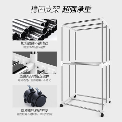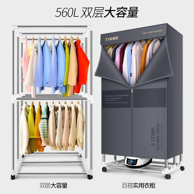 560L双层大容量,一次轻松烘干全家衣物。精选高强度加粗不锈钢管,支架稳固,承重力强。