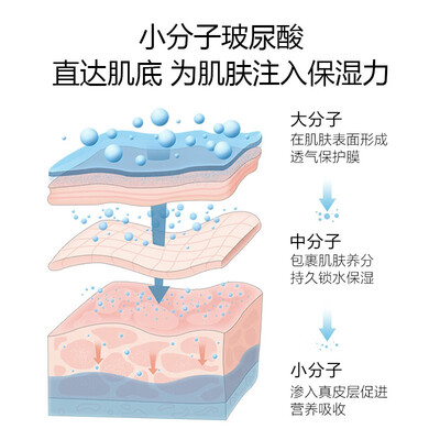 小分子玻尿酸成分,更容易渗透进肌肤被吸收,让干燥缺水肌喝饱水,肌肤更显水光和弹嫩,后续上妆服帖不卡粉。