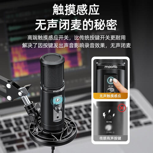设计了心形指向,降低了来自不同方位噪音的干扰,使声音更纯净。配有悬臂架,比手持更舒适,减少了手动扶持的负担。