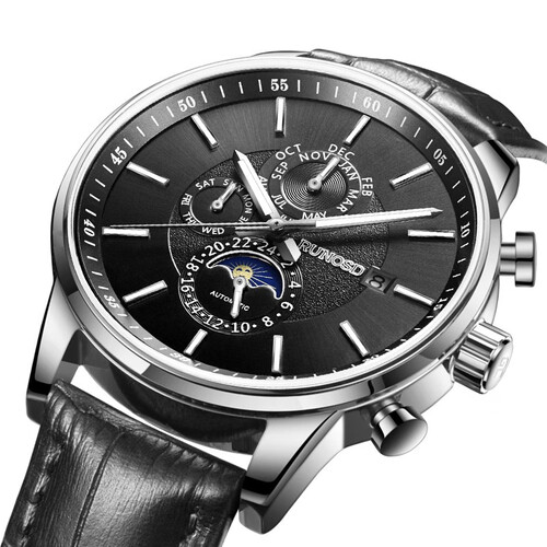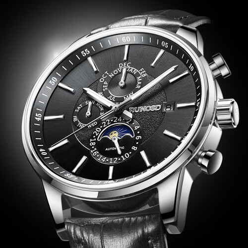 内置进口机械机芯,稳定走时,合理管理时间,通勤上班不会迟到。表盘3时融入日历视窗,易于查看日期,免频繁查找日历。