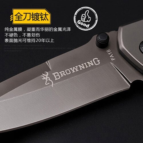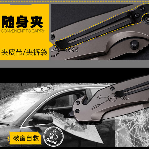 添加拇指推的设计让打开更加迅速,户外使用更加方便,且刀身镀钛设计不易划伤更美观。
