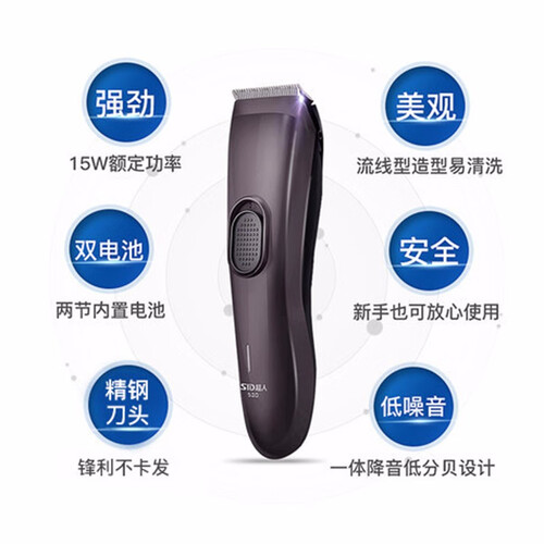 内置高速纯铜芯电机,能迸发出强劲的动力,轻松修剪不卡发。采用低噪音设计,使用时声音小于55分贝。