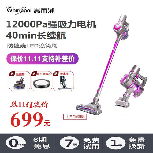 惠而浦无线手持大吸力除螨吸尘器