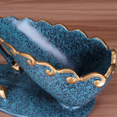 采用简洁的线条雕刻手法,经历多道工序,运用色彩层次丰富的冰裂蓝,烫金梅花,点缀造型逼真,整体生动有美感。