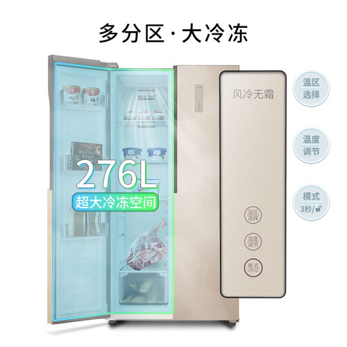 风冷无霜技术,避免出现霜冻的情况,让你使用可以更安心。矢量双变频,实现平稳运行,帮助减少波动的情况。