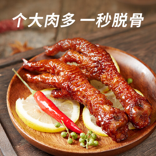 经过先炸后卤的工艺,凤爪口感更软烂,吃得方便无需啃。36种原产地香料老汤,卤味沁入鸡骨,越嚼滋味越香浓。