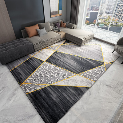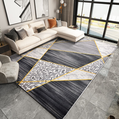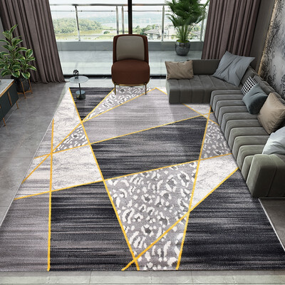 地毯采用灰色系,点缀有金色线条,色彩饱满,整体具有轻奢质感,摆在家中能够丰富室内空间,让家居生活更添一份生机。