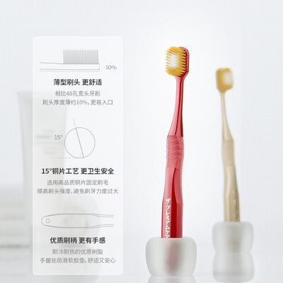 薄型刷头,更易入口,更舒适。选用铜片以15°固定刷毛,提高刷头强度和耐腐蚀性,干净又耐用。防滑柄刷,舒适又安心。