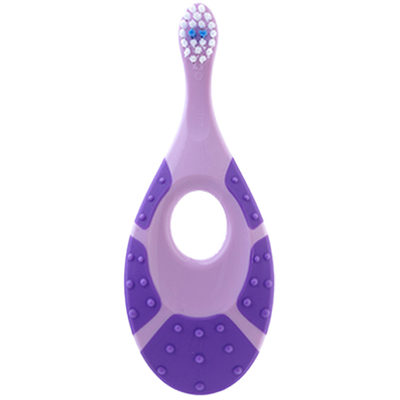 将磨牙棒和牙刷二合一,满足0-2岁宝宝刷牙使用,有韧性更净齿。大环形短手柄,把握舒适度高,防止戳伤喉咙。