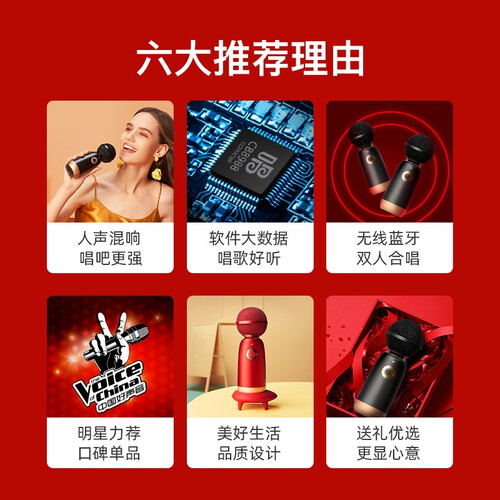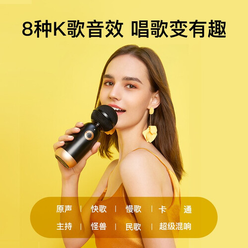 支持无线蓝牙连接,配备立体音效,纯净音质更大气场。球形音网无缝收入声音,细腻清晰保留声音细节,定制混响人声更美好。