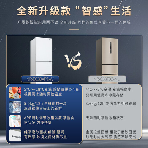 松下无霜净味三门冰箱