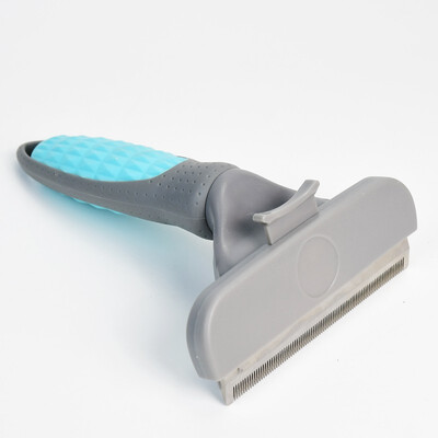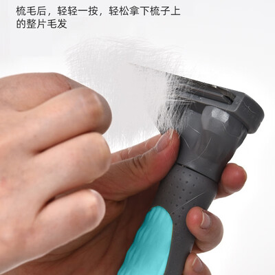 带一键按压除毛功能,轻松摘下梳子上的毛发,清理无忧。不锈钢材质脱毛刀头和凹槽开刃,可深入祛除松散底绒,减少浮毛。
