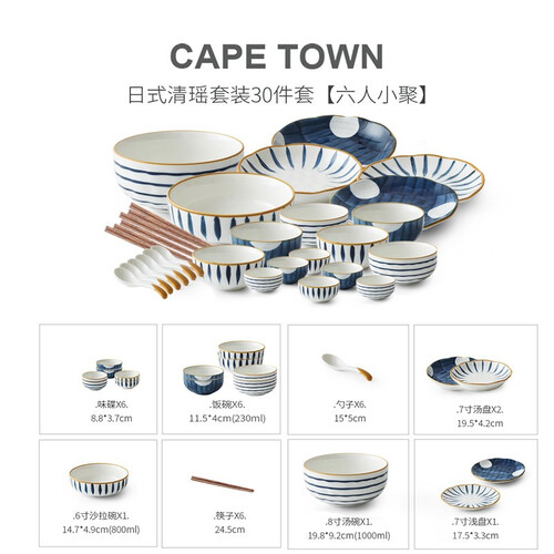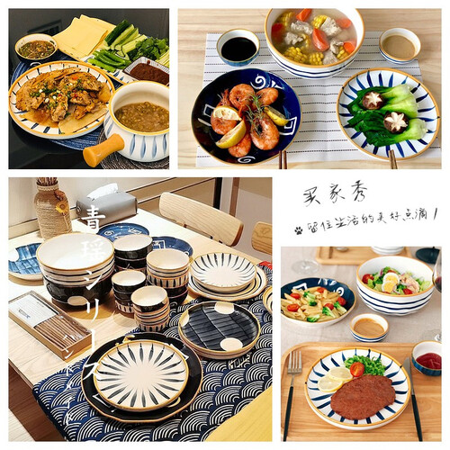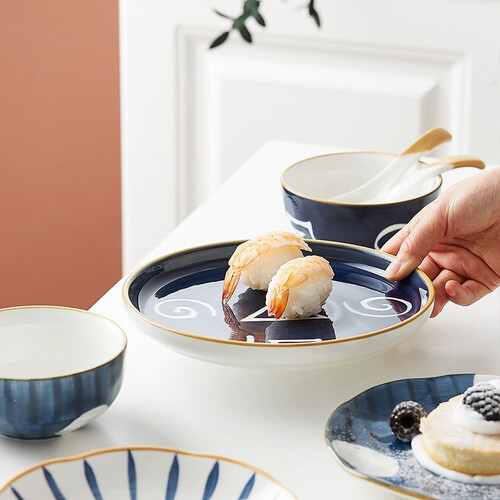 这套餐具中带有大容量深盘,造型精美,可盛放带汤汁的美食。搭配釉下彩工艺,带有湖海般的颜色,美观又耐看。
