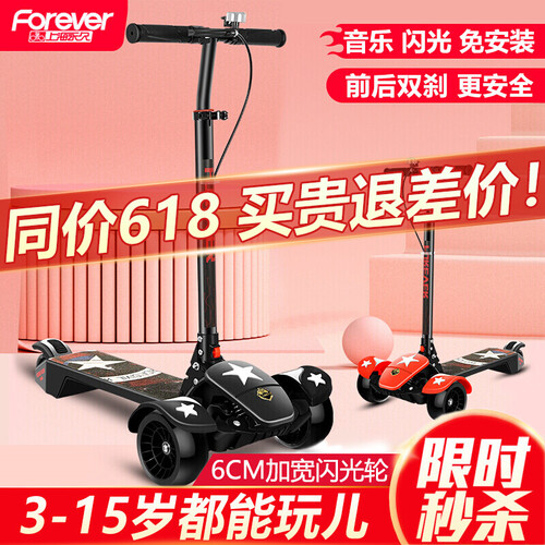 前轮内置双弹簧避震器,有效调节降低震感,滑行平稳舒适。手脚双刹配置,制动力强,无惧陡陂路面。