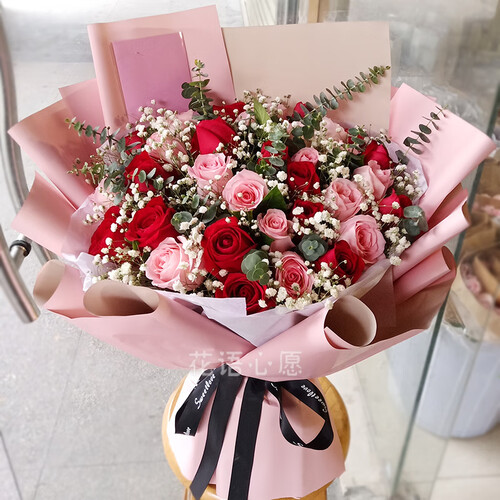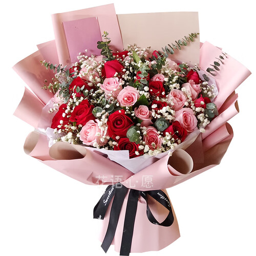 优选雾面纸进行包装,不容易发生破损,保持造型美观;优选新鲜玫瑰,花型饱满优雅,散发淡淡清香,带来典雅格调。
