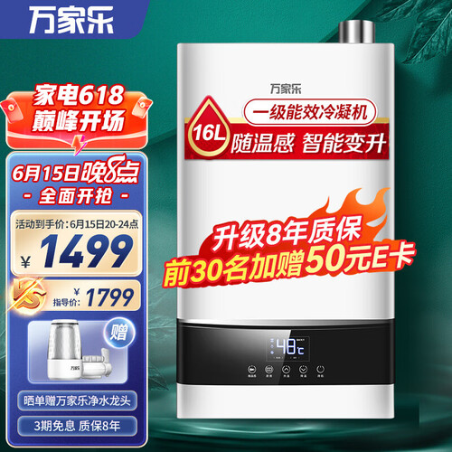 采用冷凝换热,充分利用排放的热气所产生的热能再次加热冷水,更节能省气。并设四季自调温,一键设置免调温,沐浴更舒心便捷。