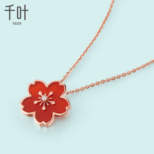 千叶 钻石玛瑙K金吊坠
