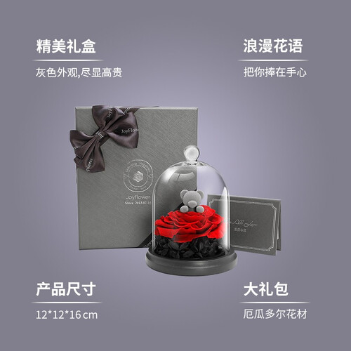 经过多种工艺打造,拥有鲜花特性,彰显品质。心花怒放主题永生玫瑰熊,传递满满爱意,适合表白、感恩。
