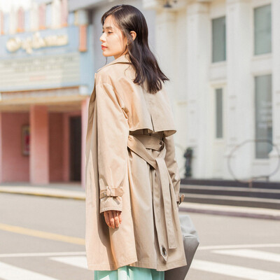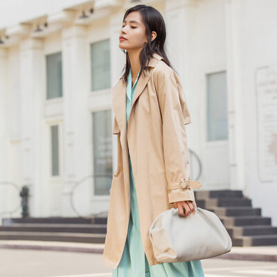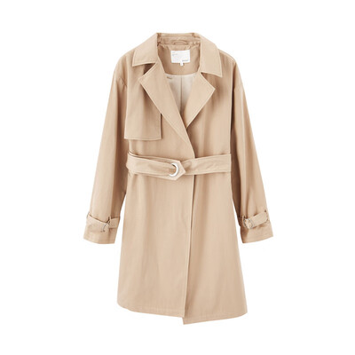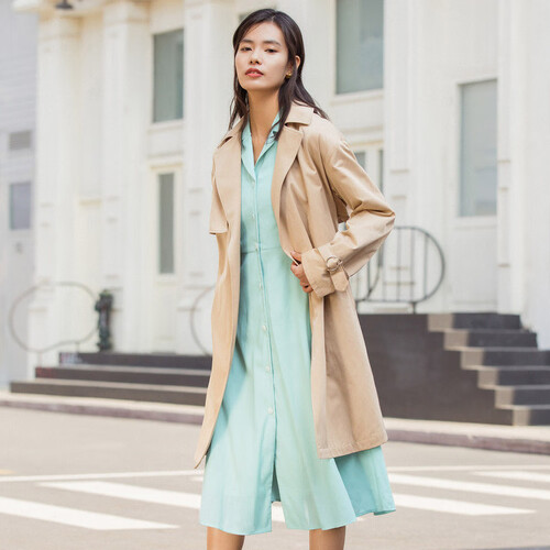 运用线条感较强的大翻领设计,让风衣整体版型更具都市优雅范儿,圆扣腰带不仅能收腰显瘦,还有防风保暖的效果。